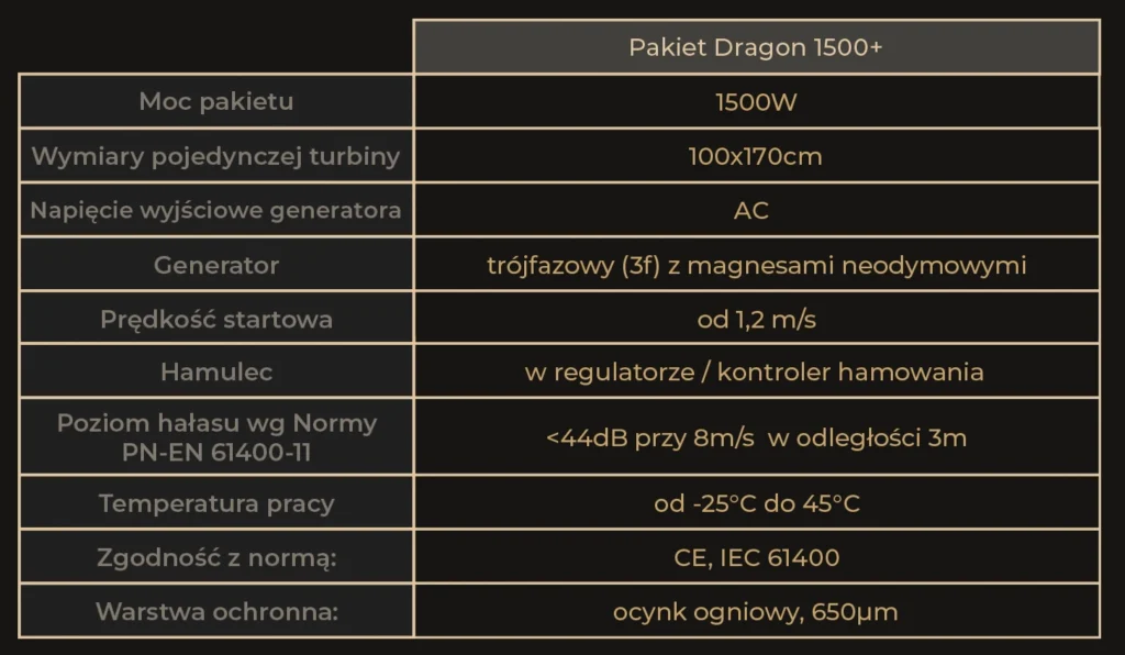 Paketas su 3 Dragon 1500+ vėjo turbinomis yra efektyviausias komplektas, užtikrinantis visišką energetinę nepriklausomybę. Veiksmingi elektros generatoriai puikiai papildo fotovoltinę energiją, tiekdami energiją, kai saulės baterijos neveikia.